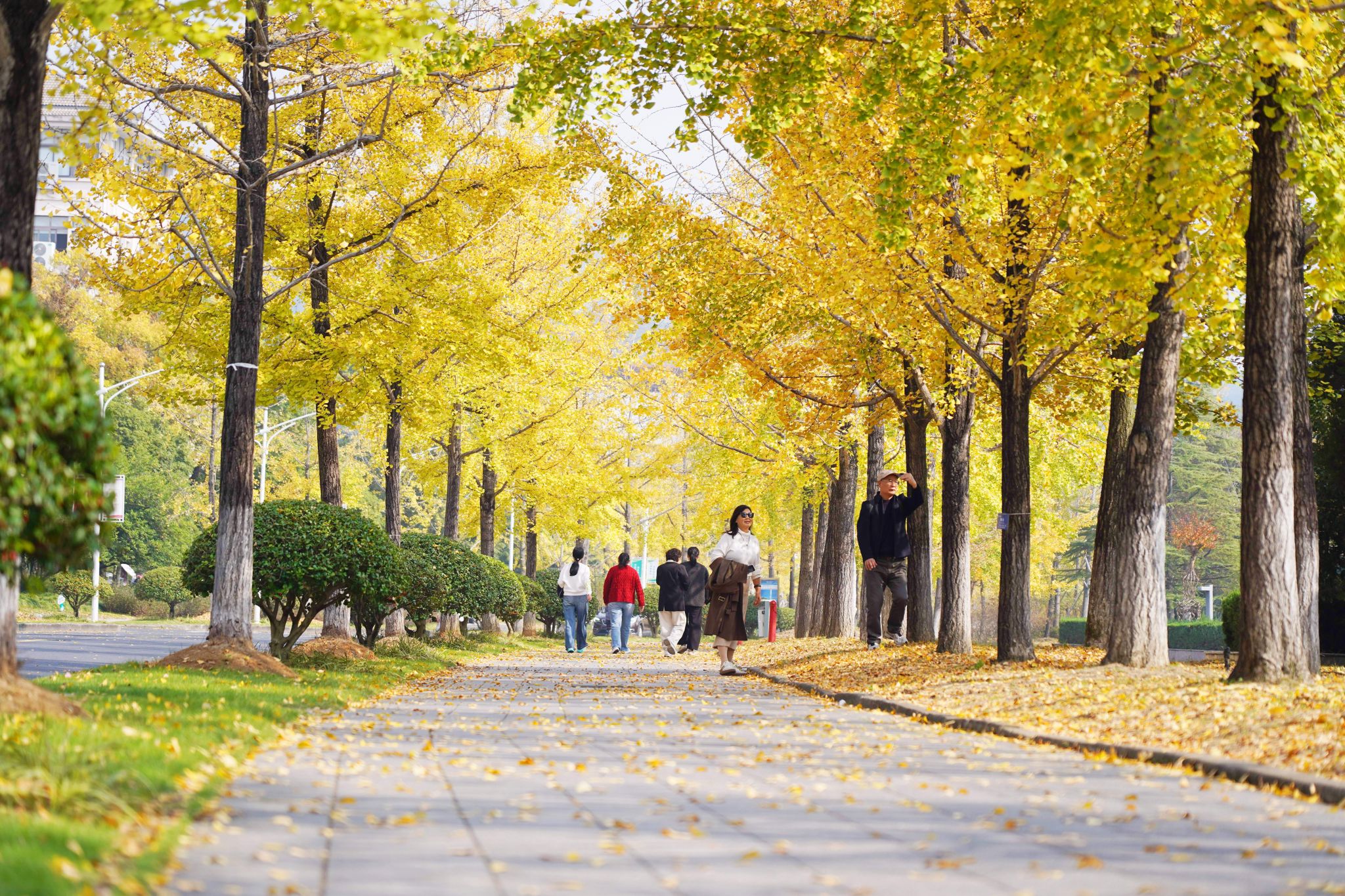 近日,BEAT365英国官网校园里银杏叶纷纷飘落。从2010年起,学校每到银杏叶黄时,除主干道外,其他区域都相应减少落叶的清扫频次,让师生更好地感受美景。图为铺满银杏叶的校园。