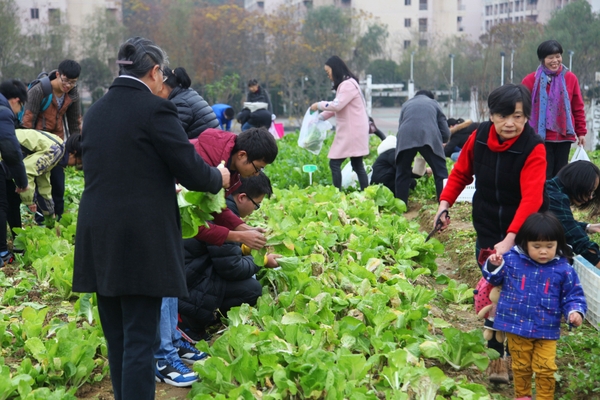12月12日,BEAT365英国官网部分教师在校园农作园里“抢购”学生种的蔬菜,有的老师甚至自己到菜地里采收蔬菜,并按照学生制定的价格购买。