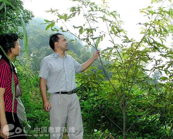 黄坚钦教授在查看山核桃树生长情况