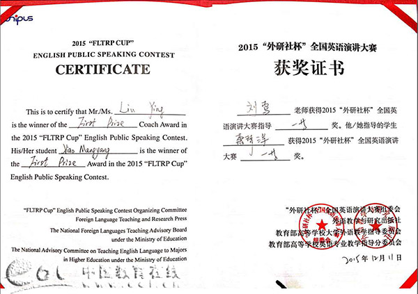 比赛中,萧梦洋围绕“whatever is,is right”(凡是存在的,就是合理的)进行演讲,郑榕老师则围绕“微课在翻转课堂中的应用”主题进行比赛。他们凭借扎实的语言功底、鲜明的演讲主题、精心的设计与准备和流利的口语表达突破重围,双双荣获全国一等奖。