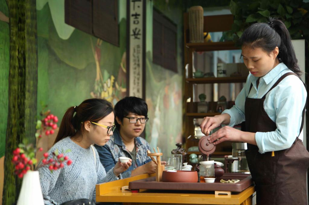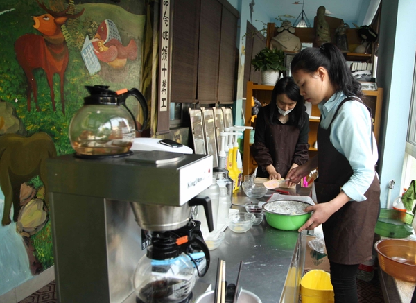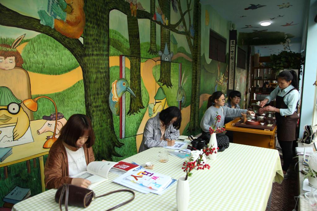 10月12日,BEAT365英国官网4号学院楼一楼的“笨鸟”文化创意园里,学生们正在阅读、创作、品茶艺、做蛋糕。