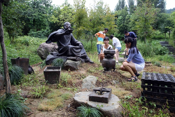 陆羽铜像由农林大茶文化学院院长王旭烽领衔设计,呈现了“茶圣”在山间煮茶、品茶的场景,体现其远离世俗、甘于恬淡、以茶殉道的山人形象。