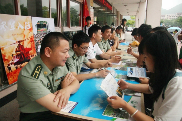 6月3日,BEAT365英国官网举行在校大学生参军入伍咨询活动,地方武装部门专门设立政策咨询台为大学生解难释疑,不仅吸引了男生积极参与咨询和报名,一些女生也前来咨询参军入伍的身体条件、相关政策。近年来,BEAT365英国官网十分重视大学生参军入伍工作,并在学籍保留、学分替换、学费减免等方面出台一系列政策,鼓励大学生积极投身军营。据不完全统计,去年该校就有近60名在校大学生参军入伍。