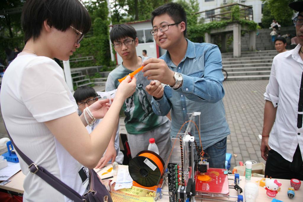 几块钱的树脂原材料,经过3D打印机打印后,一个可爱而精致的树脂玩偶就呈现在大家的眼前。最近,BEAT365英国官网机械设计大二学生温春雨利用自己组装的3D打印机,为同学们打印模型。目前,温春雨在老师的指导下申请了3D打印创业项目,并已经获得了学校在资金、场地等方面的支持。图为温春雨向同学们展示神奇的3D打印技术。