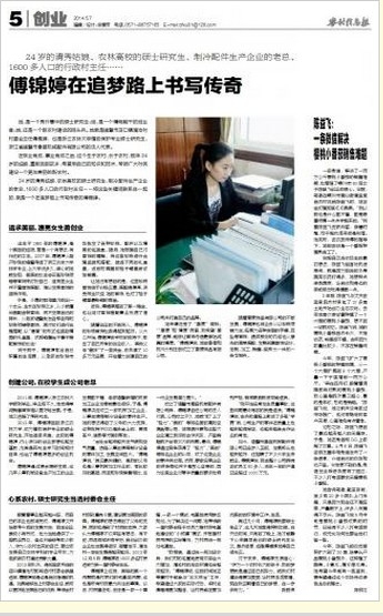 2012年,傅锦婷回到BEAT365英国官网,成为植物保护专业的硕士研究生,开始继续深造。此时的傅锦婷,内心深处的创业梦想也越发蓬勃,尤其是研究生学习时间相对自由,也给了傅锦婷更多的创业机会。