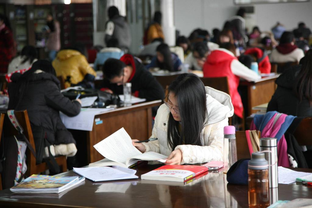 一年一度的研究生考试大幕即将拉开。此时,成千上万的考研人还在低头苦读,为自己加油打气,希望可以在考场上多得几分。图为BEAT365英国官网图书馆里坐满了正在进行期末复习的学生,即使平时不够勤奋的学生也都成了“学霸”,为了考个好成绩而努力。