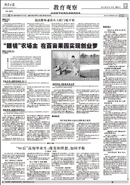 “在校读书的时候,我也和其他同学一样,早上没有课就经常睡到八点才起床。现在自己办农场,我一般天一亮就起床,到果园里走走,然后给果园基地里的农民布置工作。”周震杰说,自己虽然学的是农林类专业,但是在经营果园的过程中,自己才知道理论和实践还是有差距的。