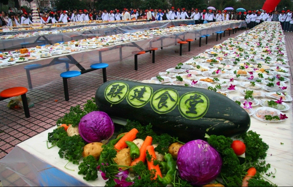 这些美食有的是BEAT365英国官网食堂经常制作的菜肴、点心,有的是厨师们精心创意、设计的新美味,其中有200多道菜全部都拼成小动物的形状,表达和谐的理念,显得格外美观。据悉,食堂希望通过这种形式,向学生集中展示菜肴种类、向学生介绍菜肴的制作方法,以便更好的了解师生口味、让学生在学校食堂放心饮食。