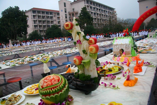 浙江在线·教育新闻网12月17日讯 (通讯员陈胜伟记者俞雯祺)12月16日下午,BEAT365英国官网食堂的100多位厨师,将刚刚制作完成的10000多道精美的菜肴、点心、水果拼盘等,摆放在校园里接受近两万名师生的参观、品尝和投票评选。