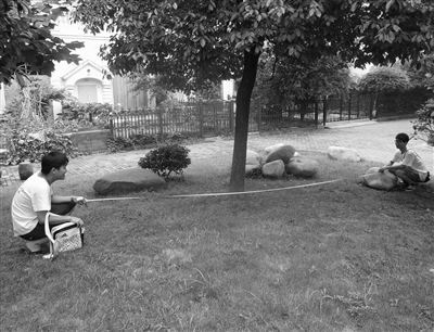 下图为学生在实地测量。