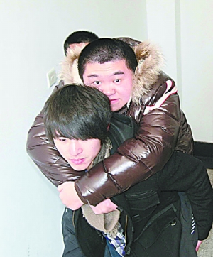 王晨是个肌肉结实的男生,和同学说起锻炼身体的秘诀时,他经常笑着说:“多亏了许磊,背他背得多了,我的身体也就更结实了。”