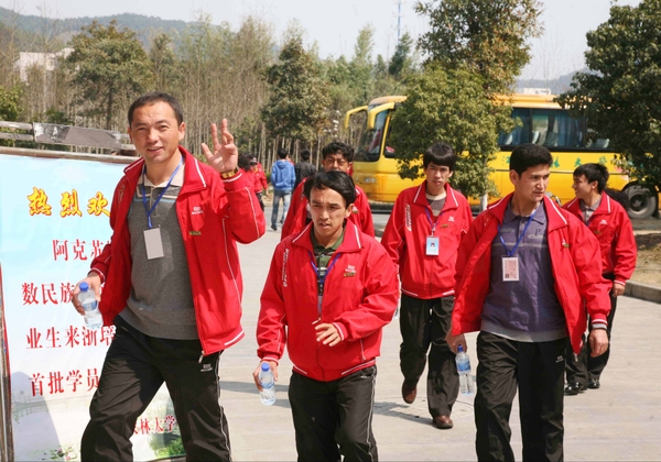 据了解,这次来浙江培训的新疆学员,均属于新疆维吾尔自治区“安排高校毕业生赴对口援疆省市培养计划”的对象。今、明两年内,新疆将分两批选派2.2万名未就业高校毕业生到对口援疆省市培养,受训人员以2002年以来沉淀的未就业普通高校全日制本科毕业生为主,兼顾少数应届本科毕业生,培养时间为1~2年。按照该计划,我省将承担1350名左右阿克苏地区未就业高校毕业生来浙培养任务,其中2011年350名,2012年1000名。