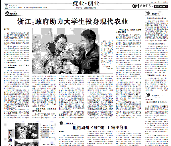 这份名为《浙江省人民政府办公厅关于鼓励和支持大学毕业生从事现代农业的若干意见》的文件, 不仅再一次强调了原有的各种支持大学就业的政策, 还专门针对从事农林种植业和养殖业生产经营工作的大学生,出台了包括每人每年可获得高达1万元的省财政补助、优先安排扶持项目、优先申报职称、免费保存人事档案等各种形式的支持政策。
