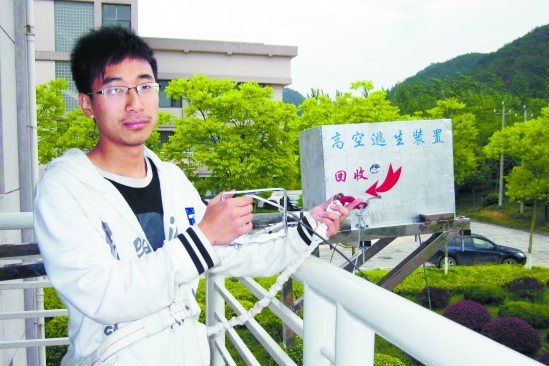 发明者在展示逃生装置。 |