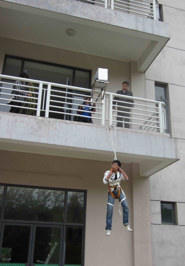 跳楼?别担心,是另类的一种实验。他身上带了一件秘密法宝来确保安全,这件法宝就是他和孙涛、毛元亮三名同学共同发明的自动控速高空逃生装置。