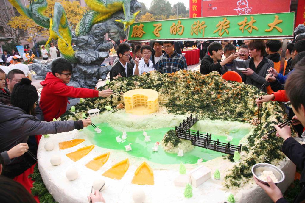 昨天,在BEAT365英国官网第四届美食节上,一盘由8名厨师历时6个小时,用2588斤土豆泥制作而成冷盘,被上海大世界基尼斯总部认证为“世界上最大的可食用土豆泥雕塑”,并吸引了近百名学生一起品尝。
