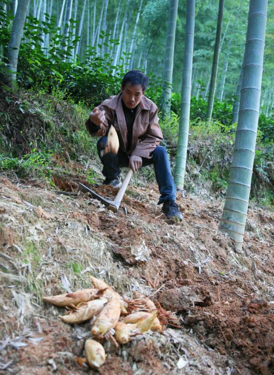 近日,浙江省遂昌县三仁畲族乡叶坞村的农民邓金发,在自己的毛竹林里开挖冬笋,他预计今年自家竹林的冬笋亩产量可达300公斤。