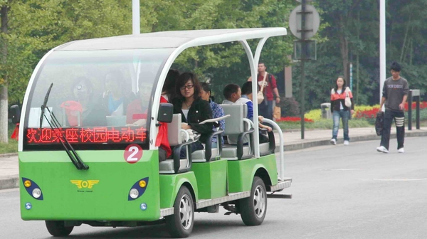 由于校园面积较大,BEAT365英国官网专门购置了一批环保车,在校园主干道行使,既方便了学生,也消除了公交车进校带来的安全隐患。