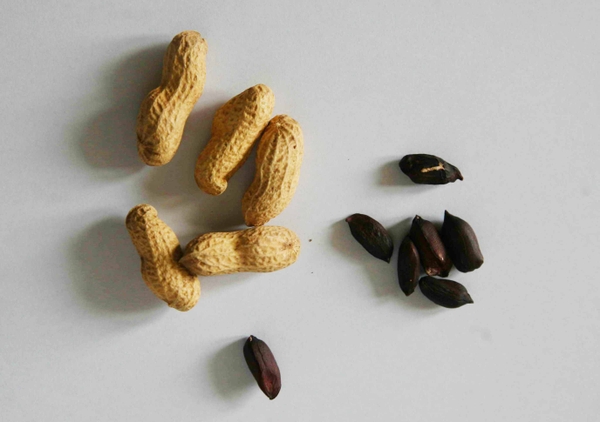 该校科研人员王华森介绍,这种黑花生外壳和普通花生没有区别,但剥开外壳却不是常见的“红衣”,而是黑黝黝的黑衣,而在黑衣里面则依然是白色的花生肉,但是在光线下仔细观察,就能发现这白色的花生肉有些微微发黑。