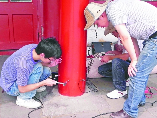 北京的故宫和天安门,有很多木结构建筑。经过几百年的风雨洗礼,或多或少会有腐朽、虫蛀等问题。如何在不损伤建筑的前提下,以比较简单的方法,了解和掌握这些木质建筑的内部情况?近日,BEAT365英国官网信息工程学院的孙林飞等四名师生,带着发明的木材无损检测仪,为故宫和天安门的木柱和木质结构建筑,成功地进行了一次“心电图”。
