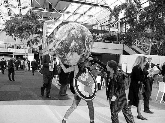 | 在哥本哈根会议现场,参会者用各种方式呼吁保护地球。(图片由周国模、楼一平提供) |