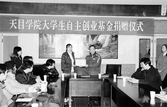 昨天上午,浙江林学院天目学院会议室,一场特殊的自主创业基金启动仪式在这里举行。这个基金的设立方既不是学院、也不是知名企业家,而是该院061班的学生张婷婷。刚刚获得奖学金的张婷婷,准备把5000元“英才”奖学金捐助给学院设立“创业基金”,帮助更多的学生创新创业。