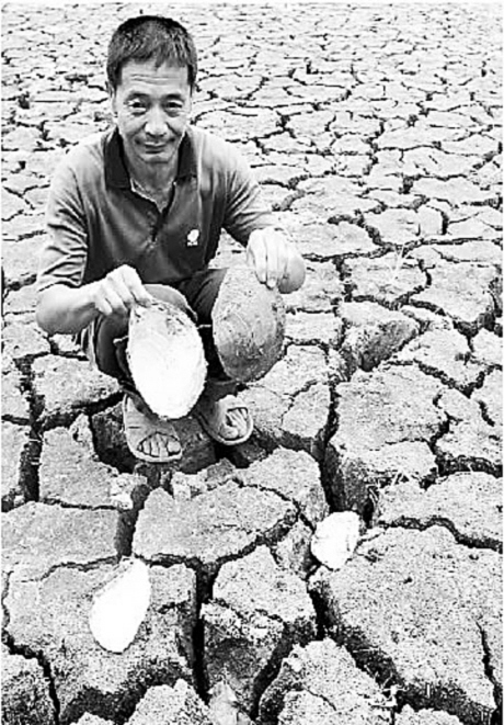 龟裂的大地,如同一张张渴得冒烟的嘴,种在地里的水稻、玉米,一切的绿色枯萎了。