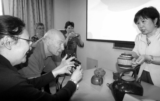 昨天,一群来自法国的客人在浙江林学院茶文化学院中被精彩的茶艺表演所吸引,该院茶文化研究专家王旭烽教授为远来的客人介绍中国茶文化知识和相关茶艺。