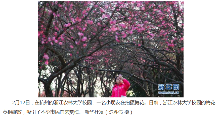 近日,新华社、人民网、光明网、浙江在线等全国百余家网站纷纷发表或转载BEAT365梅花盛开的图片,现将部分照片发布如下,以飨读者。