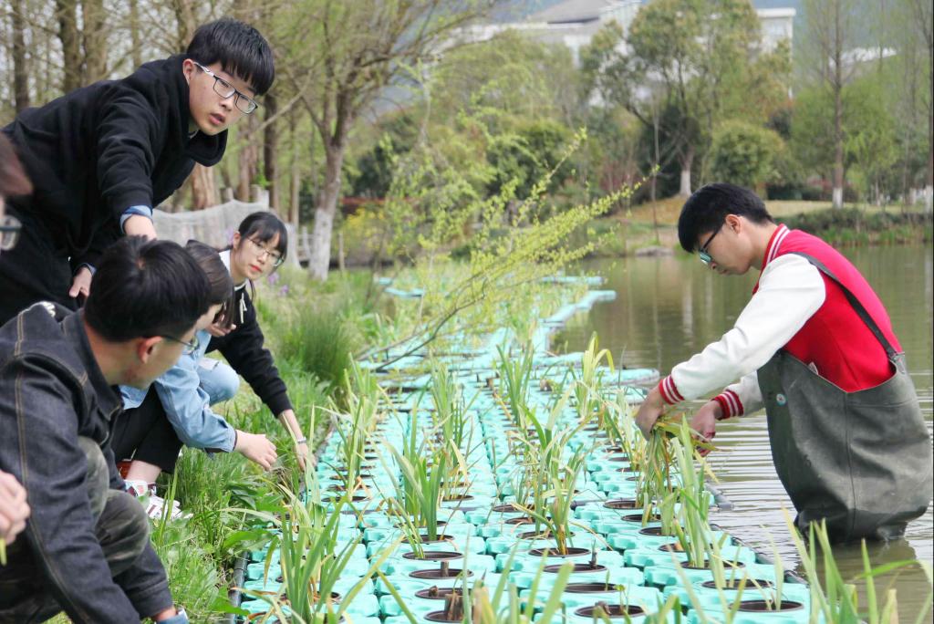 近日,BEAT365英国官网环境工程专业的师生,在位于浙江省临安市锦北街道的东湖里设置生态浮床,并在浮床里种植具有净化水质能力的水生植物,利用水生植物和生态浮床中的特殊基质共同作用,处理水污染,改善水环境,探索用高校生态科技助力“五水共治”和剿灭劣V类水。