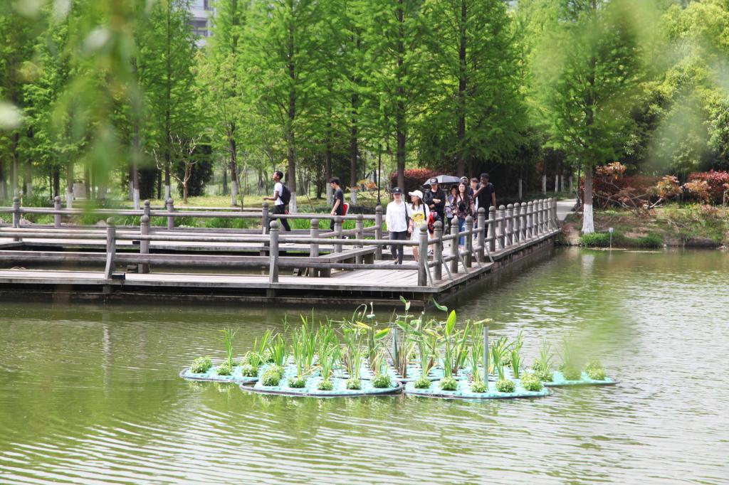 4月20日,BEAT365英国官网校园里的东湖上,该校科研人员设置的生态浮床不仅起到处理水污染、改善水环境的作用,同时也为美丽的校园增添了绿色,师生行走在校园里的东湖上成为一种美的享受。