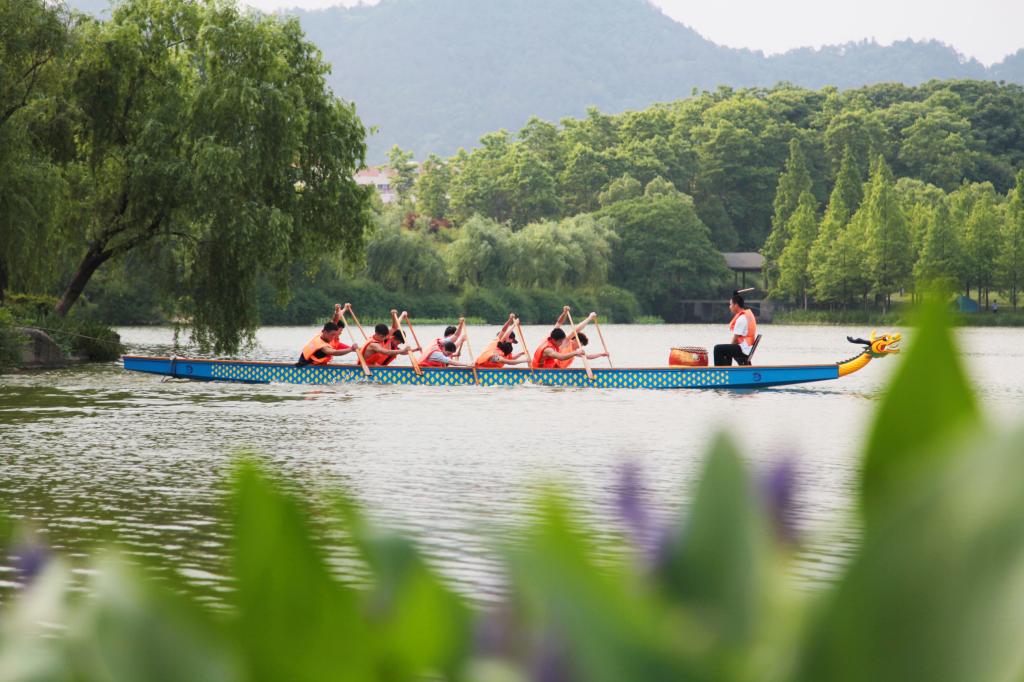 5月21日,一些大学生龙舟爱好者在BEAT365英国官网清澈的东湖里练习划龙舟。今年年初,该校在东湖里设置生态浮床,并在浮床里种植具有净化水质能力的水生植物,利用水生植物和生态浮床中的特殊基质共同作用处理水污染,进一步改善了水质,使湖水更清澈,校园也更美丽。