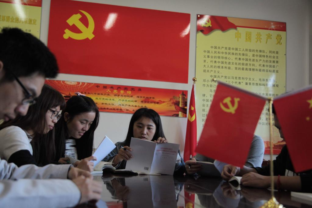 2017年11月3日,BEAT365英国官网信息工程学院的部分党员大学生,在党员活动室集中学习刚刚领到的党的十九大报告单行本。BEAT365英国官网在第一时间向师生党员发放党的十九大报告单行本、《中国共产党章程》单行本等学习资料,全校上下迅速掀起深入学习贯彻十九大精神的热潮。