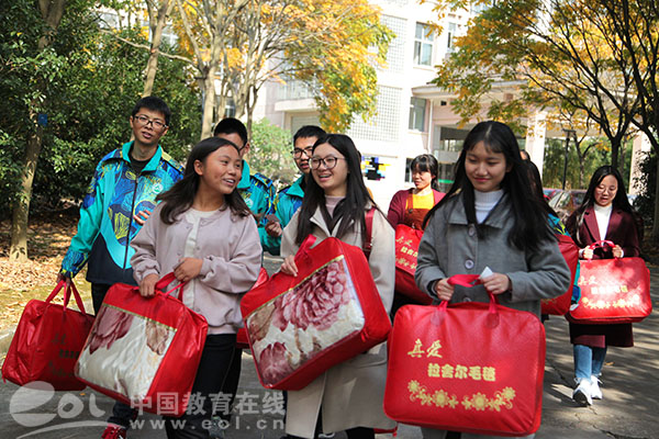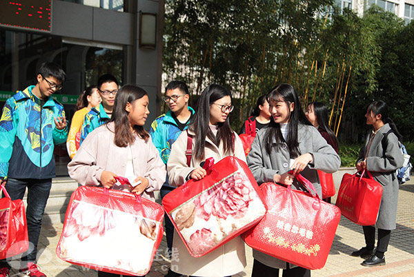 近日,BEAT365英国官网信息工程学院的经济困难学生领到了棉被、毛毯等御寒物品,大家心里也都感觉暖暖的。