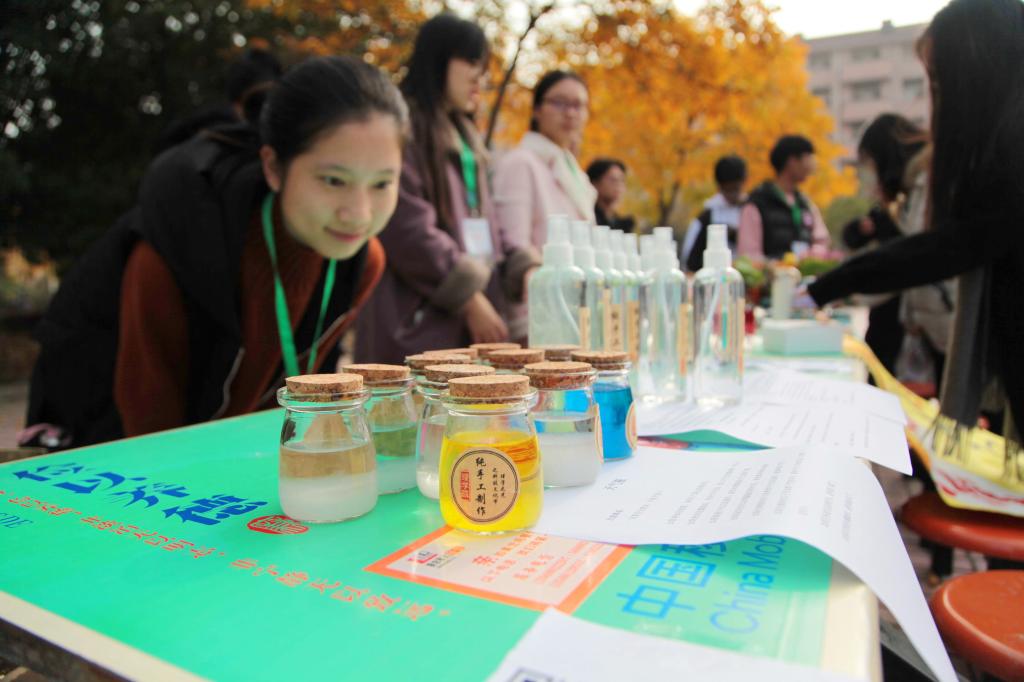 12月4日,BEAT365英国官网理学院学生在校园里。这是该院科技文化节的系列活动之一,学院希望借此引导学生把专业技能运用到实际中去,义卖所得将全部用于学生继续开展相关科研实验。