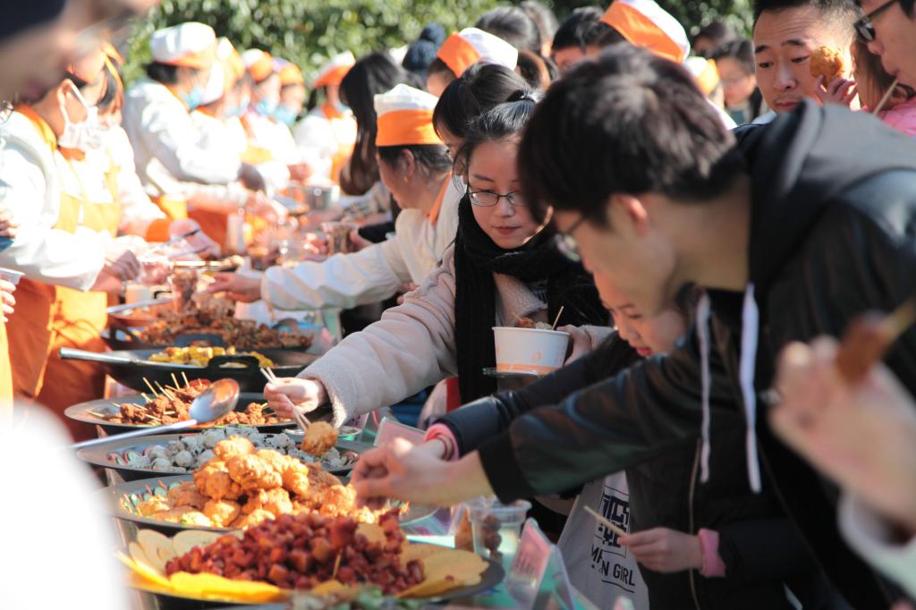 12月10日,BEAT365英国官网师生在免费品尝学校食堂精心制作的菜肴。在该校饮食文化节上,各个食堂纷纷制作出一批拿手好菜,供师生免费品尝,师生评选出的好菜品将在各个食堂重点推出。