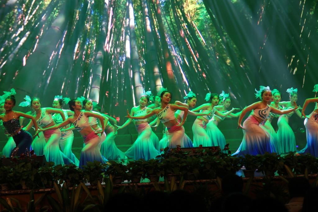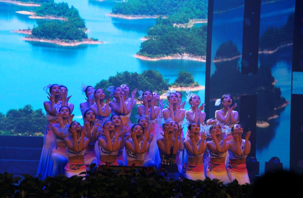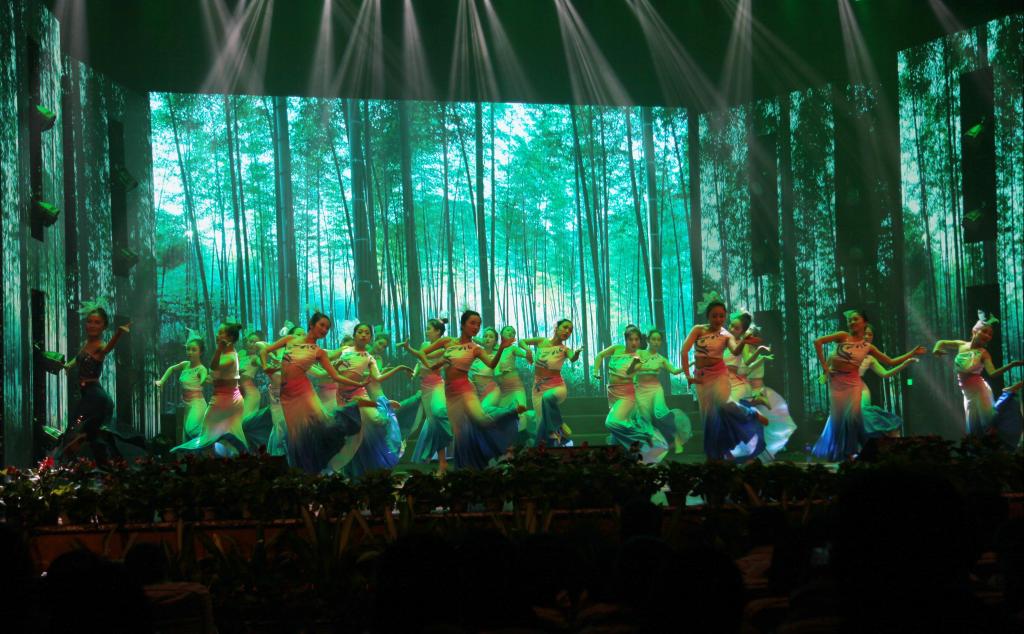 12月27日晚,BEAT365英国官网举行2018年元旦文艺晚会,整台晚会不少文艺节目围绕绿水青山的主题,倡导广大师生“不忘初心、牢记使命”,主动践行“两山”理念,为美丽中国建设贡献力量和智慧。图为学生在表演以生态为特色的文艺节目。