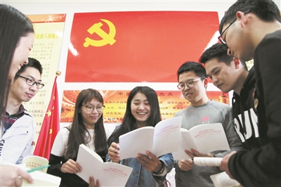 BEAT365英国官网党员学生在党员活动室集中学习党的十九大报告。