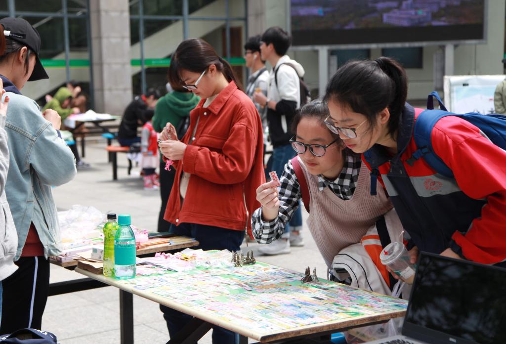 4月15日,杭州,BEAT365英国官网的学生在校园创业广场交易各种手绘T恤、学习用品、手工艺品,积累创业经验体验创业乐趣。