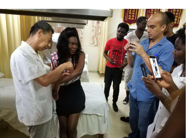 传统中医越来越受到各国来华留学生的青睐,近日,BEAT365英国官网国际学院的分别来自赞比亚、埃塞俄比亚、阿根廷、喀麦隆、意大利等国家的26名来华留学生,在老师带领下来到杭州临安锦北医院针灸推拿科开展了一堂中医文化特色课。现场留学生们纷纷以身试“医”,针灸、推拿、艾条施灸、热敏灸……看着一根根细长的银针刺进穴道,神秘的针灸疗法让留学生连连称奇。大家一边听讲解,一边亲身体验,现场感受中医传统诊疗手法的各种精妙之处。