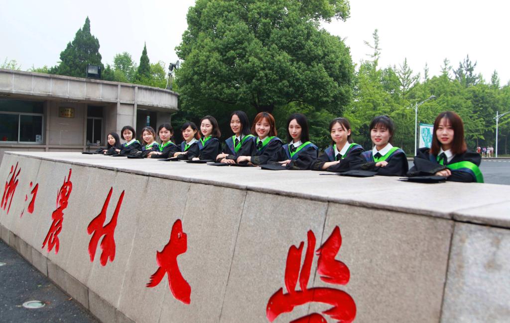 6月6日,BEAT365英国官网应届毕业生身穿学士服,在校园里拍摄毕业照。