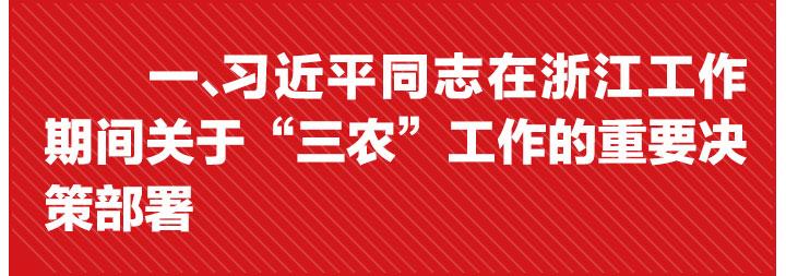 在浙江工作期间,习近平同志跑遍所有县(市、区),深入农村基层,深入田间地头,了解“三农”发展实情,围绕发展农业、造福农村、富裕农民,提出了一系列思想观点和政策举措,在省域层面对破解“三农”发展难题进行了创新性探索。
