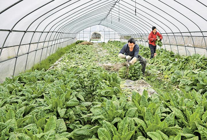慈溪坎墩街道的农业园区种植户正在收割莴笋。