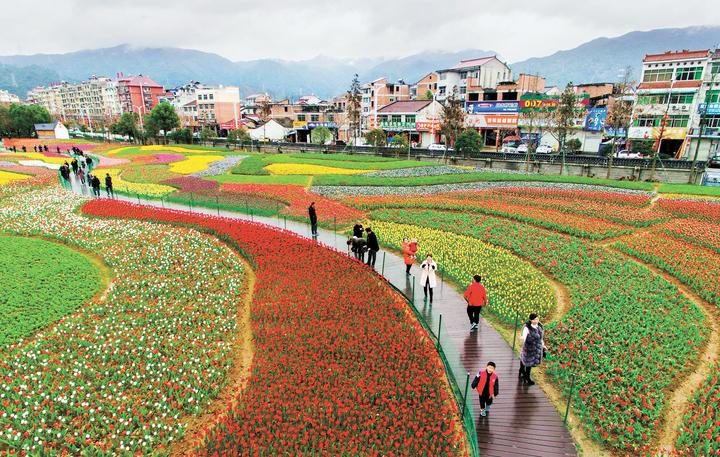 云和浮云溪畔四季花田。