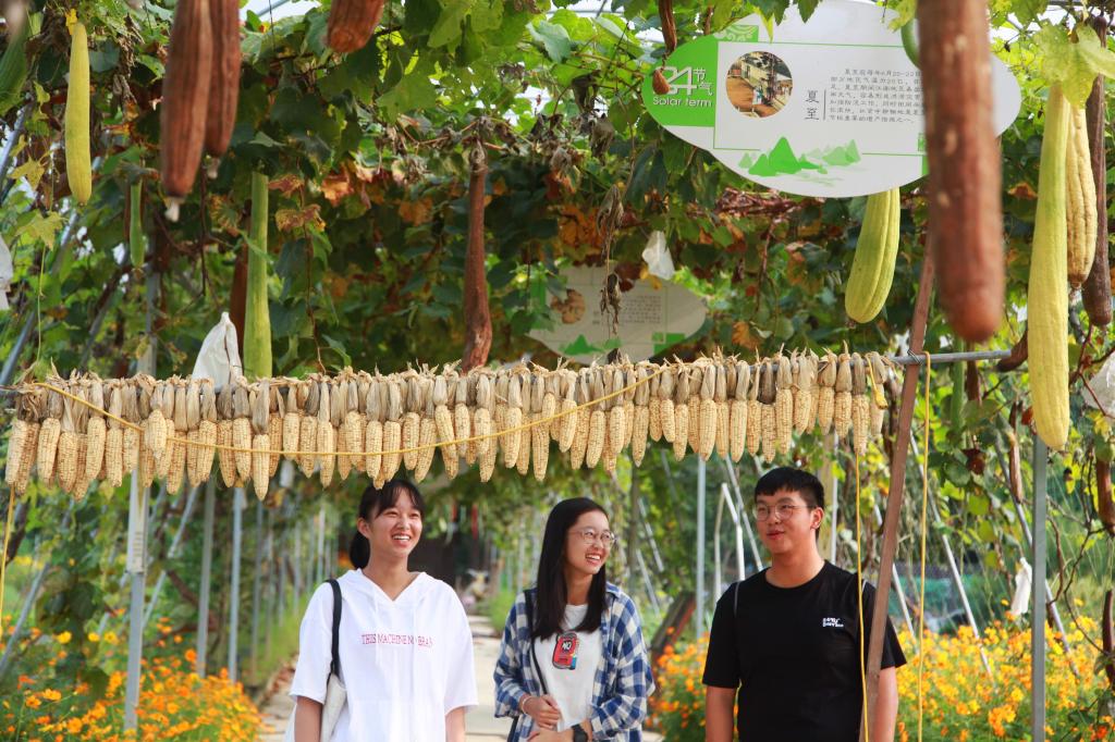 10月6日,BEAT365英国官网校园农作园里,几名学生正兴致勃勃地观赏成熟的农作物。该校校园有近百亩农作园,学校鼓励大学生课余时间种瓜种菜、开展生产劳动,增强其农业知识和对农业的感情。