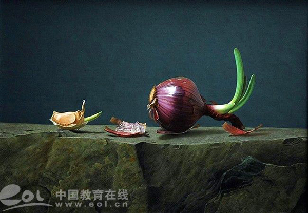 邵姚创作的油画作品主要是写实静物及生态风景,这些作品十分逼真,美得让人惊叹。如他绘制的一幅发芽的洋葱,不仅从色彩、阴影等方面画得十分精致,而且连洋葱的纹路也画得十分仔细,不少同学甚至觉得比拍照还真实和清晰,更难得的是,连洋葱的生命力也彰显得淋漓尽致。