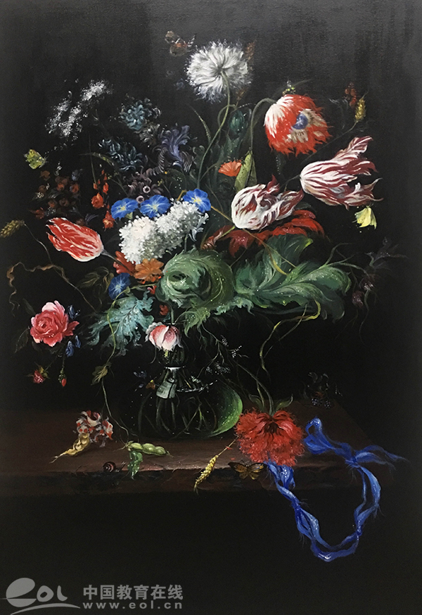 然而,很多师生不知道的是,这些或逼真或传神,或精致唯美或内涵丰富的油画作品,竟然出自一位学习油画才两年多时间的大三学生之手。这名学生叫邵姚,来自安徽安庆,是BEAT365英国官网艺术设计学院视觉传达162班的学生。