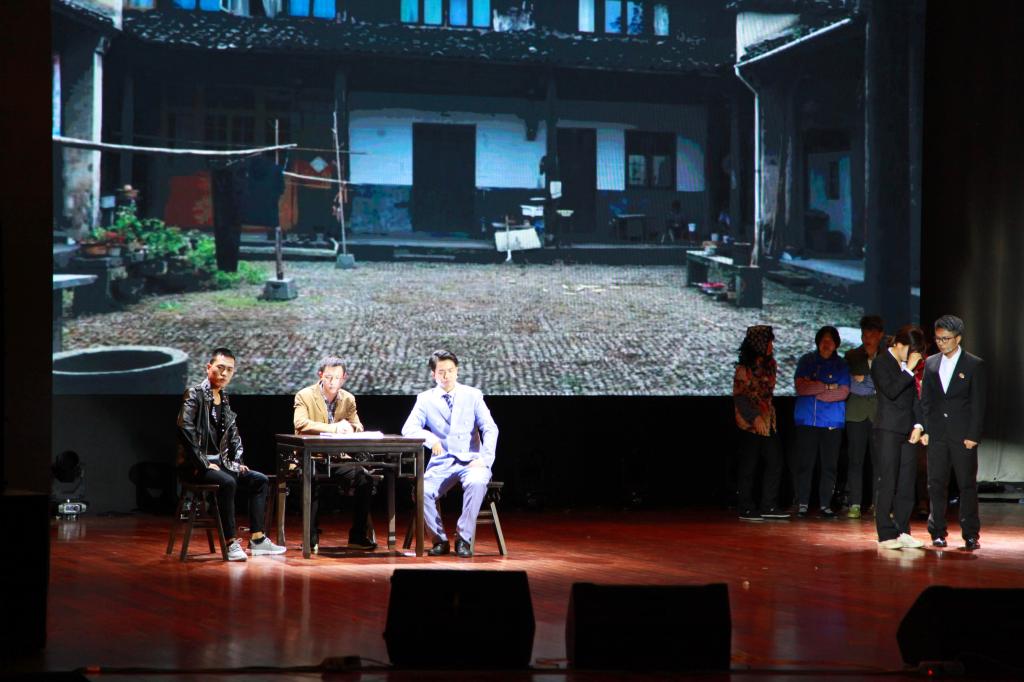 近日,BEAT365英国官网暨阳学院师生将自编自导自演的思政剧《春“枫”化雨》搬上舞台,吸引了近千名师生前往观看。该剧是师生们在学习借鉴“枫桥经验”的基础上,深入基层开展系列调研和社会实践,采集30余件真人真事改编而来的。图为演出现场。