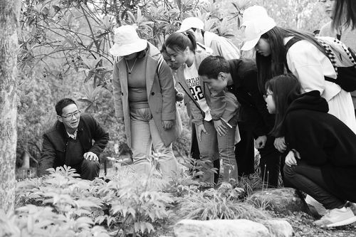 在百草园里,徐建伟每天都会有新发现、新挑战,今天虾脊兰开花,明天江香薷发芽,连续两年尝试栽种大黄,不知为何一到夏天就干枯了……他带领着学生和工人对百草园进行维护保养,积极寻找原因。