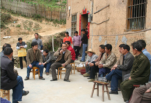图:黄坚钦教授在指导农民如何养护山核桃树